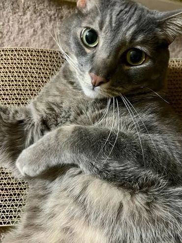 Raider is a super affectionate snugglebug who loves being close to his people. His favorite spot is curled up on your chest, happily purring while you relax together. If you’re looking for a sweet, cuddly companion, Raider is your guy. 🐾💙